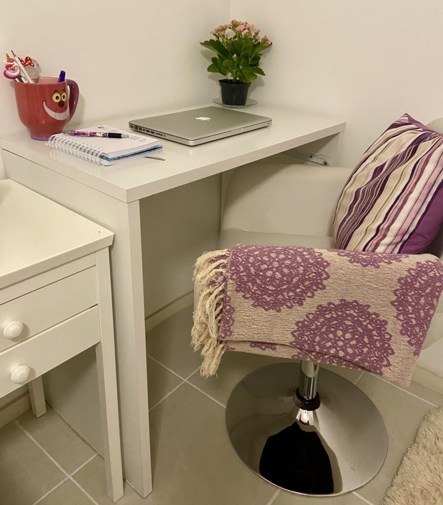 Nem todo mundo tem em casa um escritório ou um cômodo apropriado para o trabalho, mas é importante definir seu local, ainda mais se você for permanecer nessa modalidade por mais tempo. Nem que seja um cantinho na sala ou no quarto, precisamos de uma mesa limpa, sem bagunça para evitar confusão mental e distrações. Eu, por exemplo, precisei criar meu espaço de trabalho no meu quarto.